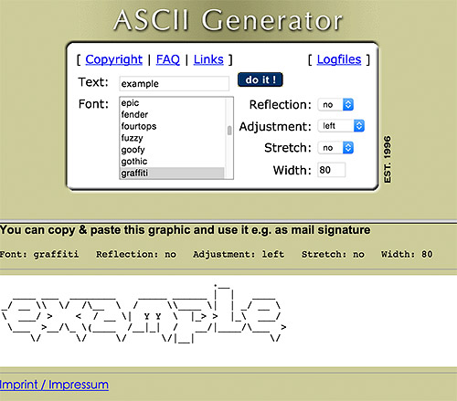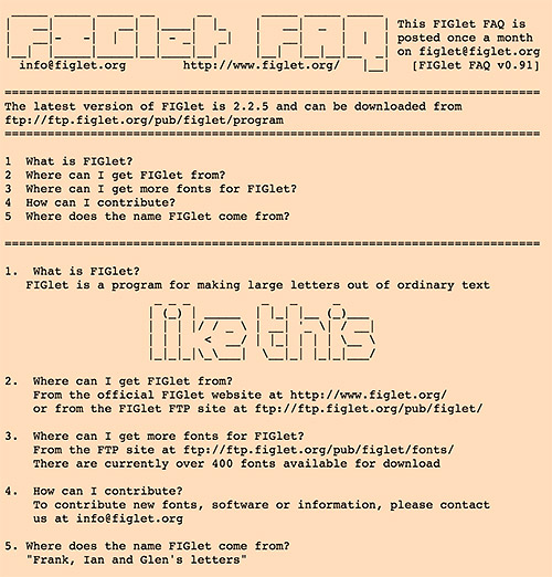 - FIGlet:http://www.figlet.org/faq.html