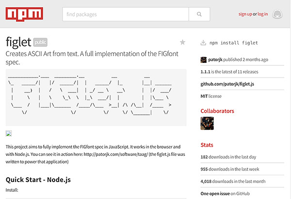 - FIGlet npm:https://www.npmjs.com/package/figlet#horizontallayout
