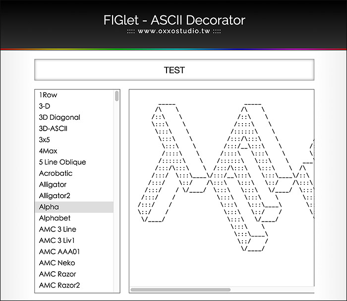 所以就做出來了這個簡單的網頁:https://www.oxxostudio.tw/figlet/,不過如果要在網頁呈現,還要千萬要記住下面兩個重點: