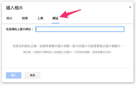 操作的方式還頗簡單的,首先要在 Email 裡頭放張圖片,圖片的程式碼長相如下,如果像是 Gmail 就可以使用「插入圖片」,選擇「網址」,將圖片網址貼上就可以安裝追蹤的圖片了,圖片相關的參數會在下面介紹。