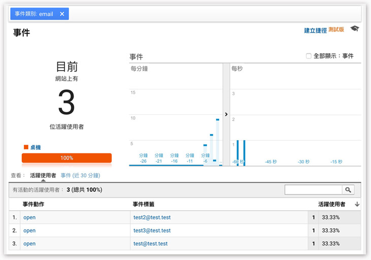 將這張帶有追蹤圖片的 Email 寄出,當使用者打開這封信,GA 就會收到對應的事件,我們也就可以進行後續的分析。