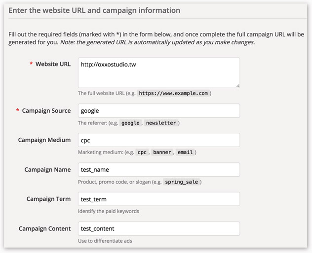 使用 Campaign URL Builder 之後,會產生下列這串追蹤網址: