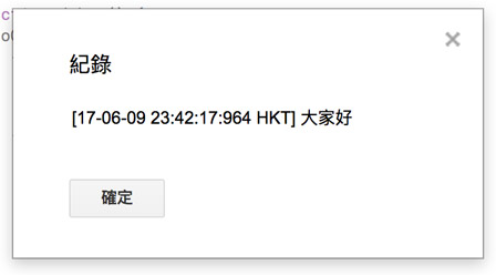 點選執行之後,從檔案的紀錄裡 ( 檢視 > 紀錄 ),就可以看到「大家好」三個字,表示我們這樣子編輯是沒有問題的。