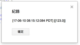 正式開始前,先回到 debug.gs,點選上方三角形的執行,如果沒有問題,應該就可以在紀錄裡面看到取得 A1 儲存格的數值 123。