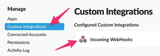 接著就可以在 Manage 的 Custom Integrations 裡,看到 Incoming WebHooks,到這一步就算是安裝完成了。