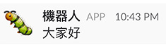 發訊息可以直接透過 CURL 命令來完成,輸入下列這些指令,就會有個名為「機器人」的通知機器人,發送出「大家好」的訊息,同時會顯示一隻「蟲」的圖案 ( empji ),按下 enter 發送成功之後就會顯示 ok,這時候在 Channel 裏頭,就會看到訊息通知了。。
